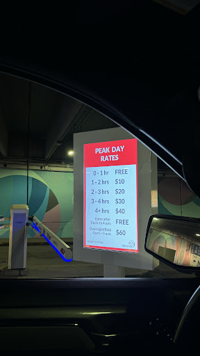 Read moreWe had free parking during business hours. I think it was two hours and under. The spots are very tight so you have to search for somewhere you can be on your own. The clearance is pretty low so if your vehicle won't fit in your home garage, it won't fit in here. I had to remove the CB and GMRS antennas from my 2004 Land Rover Discovery to fit inside. As a reference, my F250 with a 2" lift will never fit in here. We were able to find a spot far from other people so we had enough room to not get dinged. It's about the only option for parking so it...
