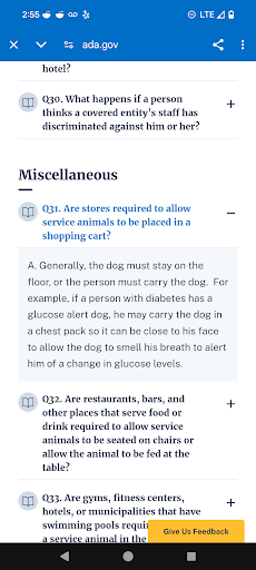I have a service dog. He is small. Typically, I have no issues with employees and they treat me just like everyone else which I love.