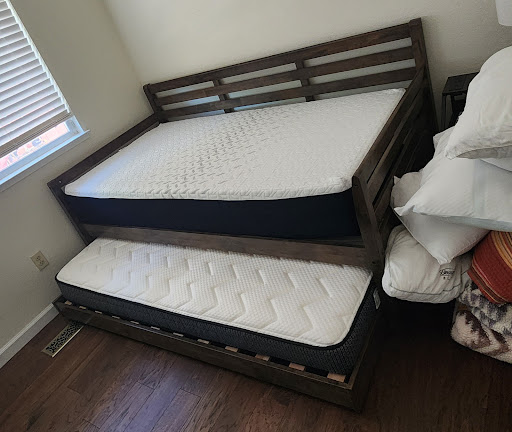 It was actually relaxed shopping! No high pressure sales. We were greeted upon entry but not in your face so we had a chance to wander around for a few minutes and try a couple beds at the front before Ray approached us asking if we had any questions. We talked a bit about what we had (20yr old TempuPedic), what we thought we were looking for (something with more support in my old age and cooling because perimenopause is a thing). I did go in with an idea of brands to look at after being targeted online and he clarified what each would be like compared to what we we were on now. We both sleep differently so we went with split king (or 2 twin XL) which worked out because we each ended up with a different model Helix. He was super patient with us, then I felt bad and admitted I was already shopping the Helix on their direct website and really came in to decide on whether the firmness was right. He laughed and said that was perfectly ok and said let's see if he could do better. He did! 2 beds, 2 adjustables bases, 2 mattress protectors and delivery with setup and take away. We'll have to wait a week because one mattress wasn't in stock but that works out since we'll need to clear the...