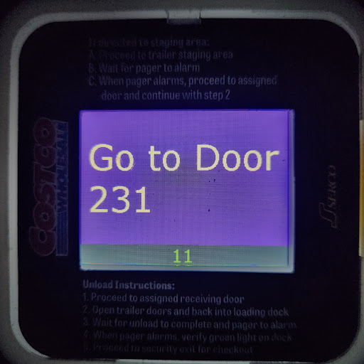 Read moreThese people have the best setup I've seen for this large of a place. Great job, thank you CostCo. For checkin just remain in the left lane and pull forward. Someone will come out level with your window to grab your BOL. They'll quickly go in and get you a sort of transponder box that will say, "GO TO DOOR #" Pull forward and to the left and there's some stop signs. It's easy to miss, but painted on the ground there is, OPEN DOORS, this is where you'll open your doors and a good time to place your bills in the back of the truck, which are now in a plastic sleeve from checkin. I had plenty of room to maneuver. Is NOT necessary to slide tandem. 1hr and 37min later my transponder beeped, flashed red and now said, "unload complete, proceed to checkout." Pull grab your bills out of the back, close one door and proceed to checkout which is the same procedure. They want you to have the bills out of the sleeve, which you will hand to them and return transponder. That's it. A camera will check the inside of trailer. There's a lot of traffic here. As you pull forward, pull to either side where you can find a spot to close your door and turn your reefer off lol. Y'all be careful, and have...