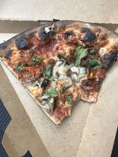 Attractive hot meal options, including a brick pizza oven, and you can order custom pies. Spacious indoor and outdoor seating. Lots of items stocking the shelves, perhaps too many. Here's what I mean.