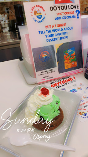 Read moreStopped into 1 Hot Cookie and Ice Cream last night after dinner at Thai Hot, one of our favorite restaurants next door. This was our first visit and it was most satisfying. The shop is reminiscent of the ice cream places from yesteryear with excellent quality and friendly service. The place is bright and clean and the decor is whimsical and inviting. I enjoyed a cookie and ice cream sundae of which there are many possibilities due to 32 flavors of Hershey’s ice cream and a variety of freshly baked cookies that leave you pondering what you’ll have since they all look gorgeous. I made mine a chocolate chunk and walnut cookie with vanilla ice cream, hot fudge and whipped cream with a cherry. My wife chose the apple pie cookie with no ice cream. We were both amazed by the delicious, cinnamon infused, homemade apple pie filling at the center of this flaky, buttery cookie. I must try this one with ice cream the next time. No doubt we’ll be back. It’s great to know 1 Hot Cookie and Ice Cream is close...