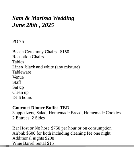 My husband and I were heartbroken by how our wedding turned out because of White House Beach Club. From our very first inquiry in February 2024, we clearly booked our wedding reception for June 28, 2025. Jan, the owner, confirmed this via text and later sent an invoice and credit card authorization form with the correct date. Because she promised to handle everything personally, we didn't hire a coordinator -- something we deeply regret.