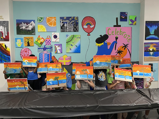 My daughter wanted a painting theme that would appeal to both boys and girls, and a week before the party, I texted with her request - a sunset over a beach with a big wave. Robin happily accommodated and was prepared with 2 different painting themes that she combined for the perfect end result, taking the kids through a step by step class but also finding ways to allow them to individualize their painting.