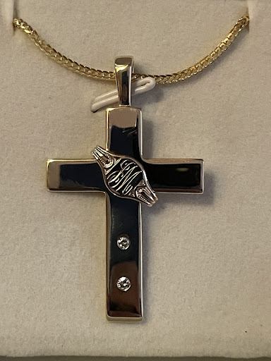 My next purchase was a custom necklace, I brought in a ring that my grandfather wore as a baby and 2 earrings with diamonds from my grandmother I told Chuck I wanted a cross made with them incorporated in the design. after a few conversations about what would look good he came up with exactly what I was looking for. After just a couple weeks between the having a custom cross casted and having the ring and the diamonds added it was finished!!! When I showed up to pick it up Chuck was extremely excited to show me! The cross was absolutely beautiful and I could not have even imagined it would be this perfect ! It almost brought me to tears being able to finally see new life brought to my extremely sentimental jewelry!!! I will have this necklace for life knowing it carries the memory of my grandparents with it! And I hope to pass it on to my children some day!