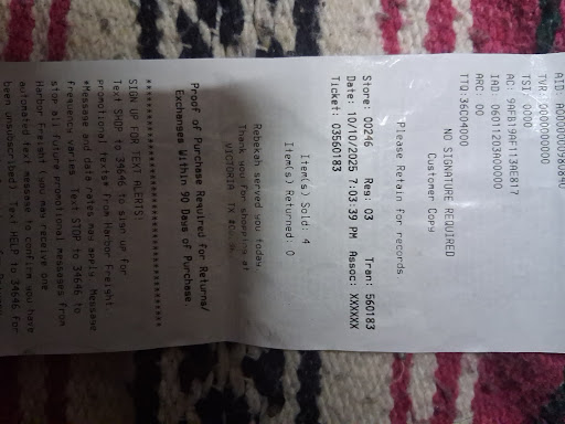 Cashier turned one of my favorite stores to go find great deals a terrible humiliating and awkward moments of just confusion. Stood in front of the register with all my items in front of the register where she was standing right next to. Had no idea what she was waiting for so after what felt like two minutes I asked her can you do your job. I bought two big storage containers and gloves and neck gaiter. After she checked me out there she stood there. That's it she just scanned my items and stared at me and stood there so I asked for a bag. She tried to put it all in one bag. Asked her can I have my small items in another bag. She kept calling me ma'am after every request I shouldn't have to ask for service and tell someone how to do their job. As an Alaskan Native America I have had experienced racism a few times before. But to experience another white American ignoring my presents and not treating me as she would others is just disgusting and unprofessional that 2 months from 2026 this is happening. After the way she treated me and made me feel humiliated and built anxiety from waiting for service but no actions so you finally build courage to ask her to do your job so I can get out of here. She turned it around and played victim of a rude customer like I was the problem. Told not to come back again or the cops will be called via my neighbor who went in the store after me. Yes there was a dog in the store which was a lot of distracting. But dog or no dog, I still wonder how can someone be at work in their position waiting for shoppers at the register. I walk up to the counter and there is no action until the shopper gives every demand on how you should do your job. Favotire store is now a terrible memory of being ignored and humiliated. Thank you Harbor Frieght for inviting me back and giving me a personal phone number to call if I have other issues. But I don't want to relive that moment ever again and will settle to...