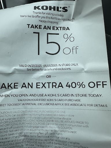 Read moreWent in with my husband so he could send something off in their UPS section. I was in the clearance section looking at my phone waiting kept being followed by store employees because I had a backpack on kind of made me feel like they thought I was going to steal something. Maybe they should go to their shoes section and stop people from putting old shoes in boxes and walking out with new shoes instead of assuming that because I have a backpack on I'm going to steal something. I don't recommend anyone shopping at Kohl's or maybe they should look at the Sephora section. Pretty sure people are stealing from there too. Garbage store. Everything's a mess. Can't really find anything...