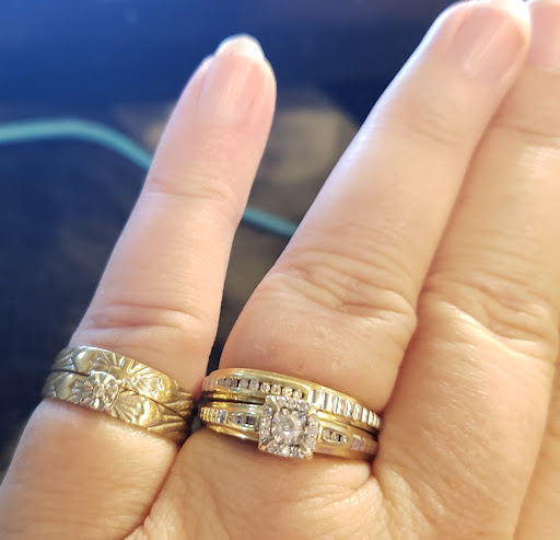 I procured her engagement ring elsewhere, but we purchased her wedding ring with Daniel's. We had Daniel's mate them together, sized, tighted, replated...the works. To our knowledge at the time, had it done right.