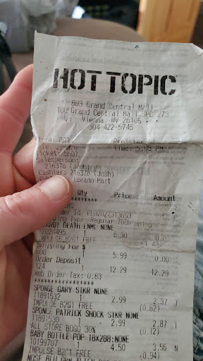 Read moreHad a great time shopping at Hot Topic today! Specifically, my sister and i had a great experience there, where we were assisted and rang up by Zayne. Helped us get the clothes we wanted and then let us know about an awesome deal where we got half off of our total cost! Saved us a lot of money by keeping us informed!! Super helpful, charming, and overall fantastic....