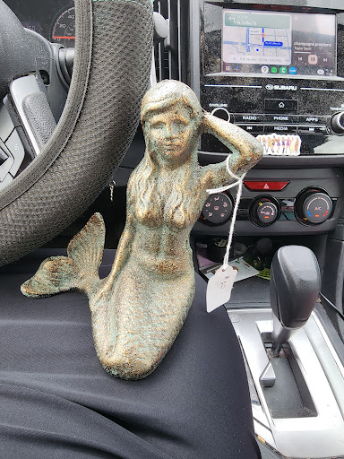Came in wanting a sasquatch for my husband. It will have to be a later purchase. Loved the giant morel mushrooms. Such a cute store all around. I was surprised to see taylor swift🥹🫶 the naked mermaid HAD to come home with me. She didn't give...
