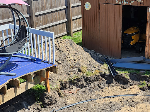 Spring came and the excavator came out and said oh this will be an additional $3500 the complete, you will need 2 truck loads of fill! He showed up on the day after the heaviest rainfall of the season. He dumped the two loads of fill on the road next to the lot and brought it all to the pool site leaving 10 to 12" ruts in our lawn. He apparently miscalculated and bought almost 1/2 of the load he dropped back the the street to be removed which did not do our lawn any favors. In the process he hit and broke off a piece of our deck frame with his machine.