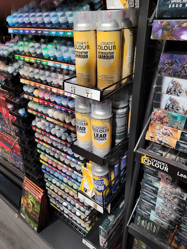 Pros: Clean and organized pretty well. They have a great selection of Citadel and Warpaint. Ok stock of Warhammer along with D&D kits. They have an open area of tables for playing board games etc and a small table just for eating. They seem to hold events occasionally. Good location next to places to eat at. Staff was professional and friendly. Nice they offer %20 off next door for some Mexican.
