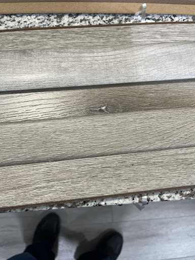 We had agreed to install the molding so we bought wood 3/4" molding and threshold molding to the laundry and closet for example that was real wood and matched the color exactly. When they came in to make the repairs, not only did the molding not match the Island and flooring, it was not wood. It was a plastic threshold and some kind of pressed board material. This was not what we wanted.