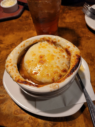 Took myself out for a belated birthday dinner. I was really hungry for Pork Chops but I was informed they no longer serve pork chops only pork medallions 😔. I decided to give them a try and ordered the Pork Medallions. I discovered when you're really hankering for pork chops and your a die-hard pork chop lover it was not what I would say a good replacement. Why because- the Medallions were served with a pineapple type glaze which I don't care for fruit on my meat but was willing to try and when you're use to eating a pork chop with the bone and how flavorful the pork chop is, I did not find the pork medallions anywhere near as flavorful as a regular Pork Chop. On the other hand I did upscale my meal with a lobster tail which was delicious. Also ordered French Onion Soup which was out of this world It was so GOOD!!! It was Cheesey, with onions, a crouton and so FLAVORFUL 💯 I would come back again just for the French onion soup!! As for the Bloomin Onion-I was very surprised once it was placed on my table that it was much smaller than they used to be. I will only go to this Outback even though I live closer to the one on Fordham Street due to very poor service multiple times. I will only come to the Hilltop Shopping Center Outback location because I know that I can count on...