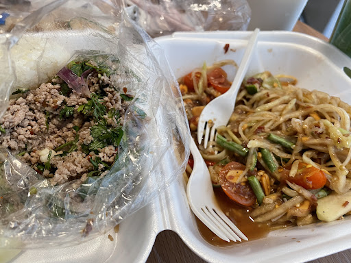 Read moreMy first time here. There’s parking lot right in front of the store so easy access. It’s a small Asian market with a food court. Service was good. They spoke English so was convenient. The food are ok. Not the best I had but also not the worst I had. The papaya salad was too sweet for my taste, the beef lab was grounded very fine where it taste granular, flavor is good but texture I didn’t like. The noodles dish was more starch then what I’m use to....