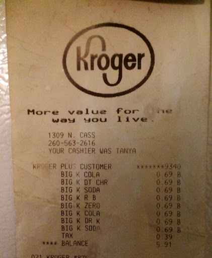 I do love the wide varieties available here at the Wabash Kroger. But their prices break me every time. I am a single mom and on a very tight budget. I cannot afford to spend that much on food! The store is always clean. The lines are never terribly long. I will say the customer service window is kind of annoying, and not always the friendliest. Every time I need to use Western Union, they have to find someone out on the floor first. Then that person comes dragging up like I’ve just interrupted them from some very important work. They hand me a pad of paper and demand, “driver’s license, transfer number, name of person, blah, blah, blah.” What happened to the, “Hello! What can I do for you? —-ok. I will need to see your ———.” Bottom line....I use this store cause it is pretty much all we have in Wabash, besides Walmart. But it breaks me every time I shop there and they need better...