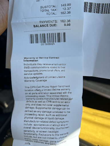Read moreThis is worst cell phone repair shop that you better never go to‼️‼️I brought my 9 year old daughter phone in, because the screen would not stay on. They informed me that the issue was the screen. I spent $162.36 for a screen replacement. When we picked up the phone we took it home turned it on and tried to make a call and the phone shut off. The phone said the display screen was not an Apple part or it was installed incorrectly. So this means the screen they put on is not even compatible to the iPhone and it still did not fix our problem. I asked the to give me my money back and take the wrong screen that doesn’t work off my phone. They refused so I explained to them that I will be taking them to small claims court to retrieve my money back‼️‼️ DON’T WASTE YOUR TIME OR MONEY‼️‼️ YOU WILL BE VERY DISAPPOINTED‼️‼️ There was also a warranty on the receipt… PLEASE SEE...