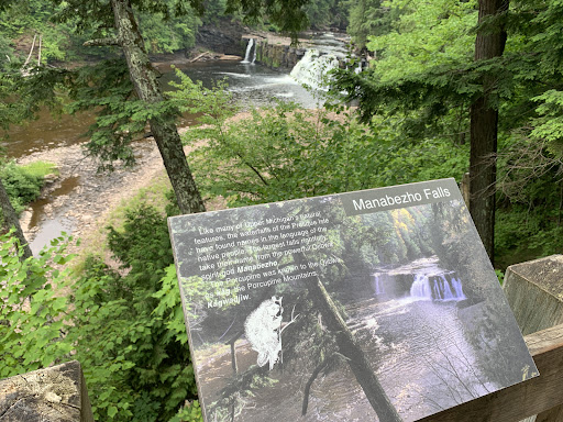 Manabezho Falls is an easy .2 mile walk from the parking lot. We came during a regional drought but it was still worth the price of daily admission and a quick visit on our way to the Eagle Harbor lighthouse. Very little water during our visit. These are suppose to be the largest falls in the Porcupine Mountains. The stairs and boardwalks were impressive. It’s a great...