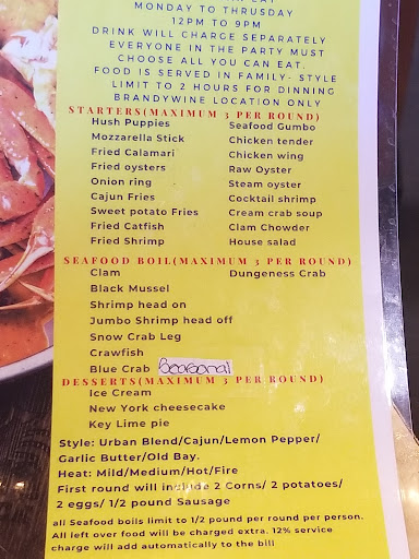I came across this Seafood place. I had 1/2 lb. Crab legs, 1/2 shrimp, 1 corn, 2 potatoes, 1/2 sausage & 2 boiled eggs for $32. This was my 1st time trying it. The guy at the desk was very helpful with the menu. The main reason I went in, is because of the sign on the window. They offer All You Can Eat Seafood. I believe it's Sunday through Thursday for about $54. You can't beat that anywhere. My family does plan on returning soon to test that theory of All You Can Eat Seafood. The sauce was tasty & the food was good. I highly...