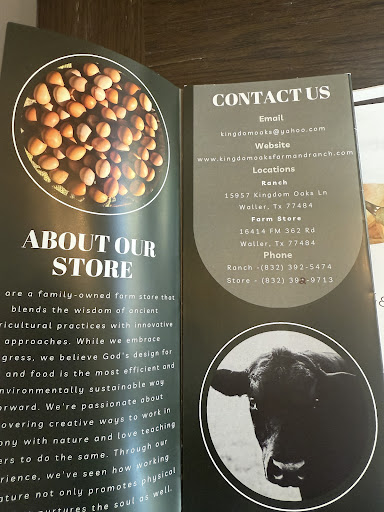 Read moreIncredible find in Waller, Tx! The Kingdom Oak Farm Store is filled with all the goodness of the earth. So if you’re looking for wholesome and truly all natural food, this is your store. We loaded up on Sourdough bread, juices, honey, honey garlic, chocolate, and cinnamon rolls! Beautifully done with charm and character. Our only regret is we didn’t bring a freezer to take home their incredible meat products back to TN. Ugh! Next trip!! Parking is a breeze. Genuinely kind and attentive staff will assist you in any way you need. It’s a destination...