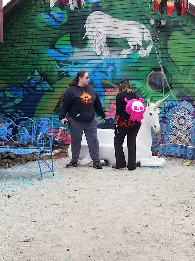 Okay, I attached pictures that hopefully make it hard to identify my friends; I don't have any pics of the outside that doesn't have people in them. There are a LOT of different places to take great pictures! I am sad to say that I didn't think of taking pictures for this review (I don't think to do reviews until the app prompts me). There are steel drums and 'Butterfly' drum instruments outside that are FREE to play with, so I did. There is a maypole down the hill by the right of the parking lot, haven't seen one of those since I was a grade school student. There was a gong on the hill before going down to the maypole, but the stand isn't placed in a way to allow the full sound of the gong to be heard, I found that holding the rope of the gong so it wasn't hitting the ground of base of the stand, the gong sounded BEAUTIFUL! It saddens me that the gong isn't set up better so that EVERYONE can hear the full sound. It took us a while BEFORE we went in the shop. Inside shop has a steel drum for sale, there are rooms chock full of stuff - I need to go back because I know I didn't see everything and we were there FOR HOURS! We went upstairs where it was like being shrunk, the butterfly hangings were huge, as were the fake flowers that adorned the whole place. The kid we were with likened it to being a Smurf and a a Fairy, I can see what they mean. It was REALLY cool to sit on the seats and swivel around, they looked like stationary seats until You sit. We had a LOT of fun upstairs and got some free magnets too. It was like going to a relatives place and seeing all the stuff they have, except they will let You buy the stuff of them. I REALLY enjoyed myself, as did my friends, we hope to go back again, bring other people and maybe add this to the place we bring our out of state friends (the friend in the picture was the one that wanted to see the place) I got there early, not on purpose, thankfully I was able to buy all the stuff I found and wanted but I do want to bring more friends here. There are items there that I didn't know existed! Go see if for Yourself but plan to buy gifts for people while You're there, the stuff here is GREAT for gifts, I spent a lot and it's...