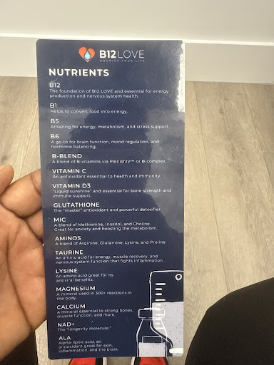 The team at B12 Love goes above and beyond to make sure you feel cared for, educated, and empowered on your wellness journey. Every session leaves me feeling refreshed and motivated to keep investing in myself. If youāre looking for a safe, effective, and uplifting way to improve your health, B12 Love is the place to go.
