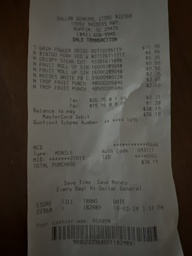 I had a frustrating experience at this Dollar General location. After spending $38.19, the cashier didn’t bag all my items. When I called to report it, she put me on hold to consult the manager, only to tell me the manager wouldn’t be in until tomorrow. It made no sense; if she needed to ask her, why not just take my number for a follow-up?