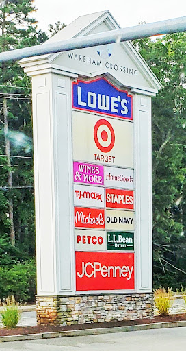 Great shopping choices! Too bad the entrance sign is hidden by the trees. Located on rte 28, near rtes 195 & 58. There are 2 entrances off rte 28: first is at lights which is where you get to see the Wareham Crossing sign and second entrance is adjacent to the next set of lights which takes you 1st into small strip mall with : Walmart, Wendy's, Starbucks, Aldi's, Dollar Tree, mattress store, and other shops. If you drive past the Walmart, the road brings you into back end of Wareham Crossing by the Lowes Hardware store and the other stores. Torrid, LLBean, Target, Michael's, several restaurants and other stores all cuddled in a nice walking area of each other. Plenty of parking. Just wish someone had thought about putting up shade awnings over all the metal benches bcuz that's the reason why people aren't using them. I arrived just before opening and the benches were already too hot to sit on. There's plenty to select from here, something for everyone. I'll definitely be doing more shopping at Wareham Crossing!...
