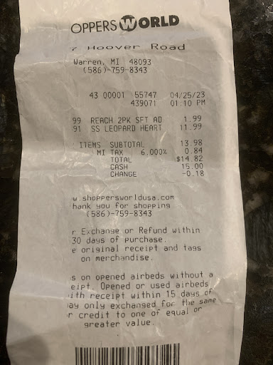 forman mills has more of an organized approach then this place. i have now tried my best with an open heart to go here and actually have a good experience.. & it was yet another disappointing tripā¦. it felt like a mix between a broke down marshallās and the walmart at 12& gratoit in roseville. Iām pretty good at making excuses for people, but the manager I dealt with last night was absolutely rude by myself working in customer service and thereās no way I would still have a job if I handled a customer as he handled me. Cause I have an honest mixup of the signs that were placed out, But honestly, the mixup happened so easily.. nothing And I mean, nothing was in the correct spot.. You had full price items in a clearance rack for seven dollars, yet iām the one who canāt readā¦iām the one who wasnāt loooking in the right spot if you ask the manager š I was looking at two different racks for shirts for 6 for $10 and long and behold⦠they Where a part of the same deal, but they werenāt because one was juniors and one was notā¦. But the way the manager handled himself last night and especially with the cashier I had she just seemed like she hated her job. She seems so burnt out overworked and tired. Customer Service was honestly just garbage. I feel like I wouldāve had better customer service at the harbor freight next-door then i did here.. This place has good potential but the staff thatās there currently get rid of them all.. shoppers world your employees are costing you more money then you can afford to lose. clean house, clean the store up again, and maybe youāll have Better clientele...