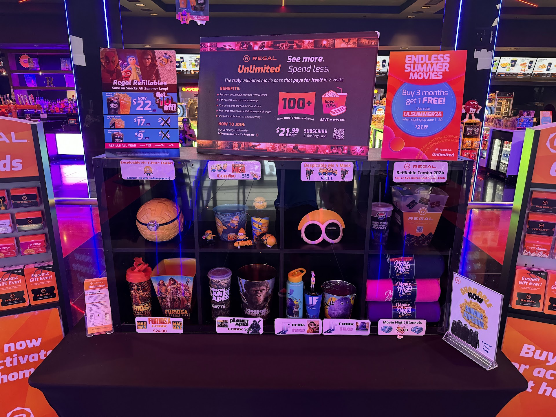 There is a large gaming area, a bar next to concessions, and additional items you can purchases like the new pop corn buckets which are all the rage, or blankets of your cold.
