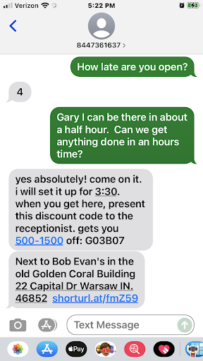 Read moreThe service I received from this place was truly sad. I told the kid that was helping us from the very beginning that the car would be purchased in both my husbands and I name. I'm not sure if he just didn't know what that meant or he just didn't care. Even while filling out paperwork I told them that it should be in both our names. Still ignored me. Now I have a car that is just for me and I can't consult anyone at the office or bank about MY car without permission from my husband. Thanks again for that! We agreed that they would put a new sunroof in my car shortly after purchase. They quoted one time frame and did another. Refused to tell us who they used to put the sunroof in. Managed to put a couple hundred miles on my car, leave it for me to pick up with the gas light on and the tire on the rim. When confronted they offered a gas card, and said they could take care of tire at a later date. I was lucky enough to have to put air in my tire for a 5th time in the rain one morning. After throwing enough of a fit to them that they finally rode in the car with me to discount tire to have it patched for free! The customer service is an absolute joke. Lastly they charged us $5000 in finance charges. I guess the free sunroof they promised us, was not really free. Don't believe a thing they say, chances are they are just telling you everything you want to hear to buy. I can't put zero stars for this review which makes me sad. Because they don't even deserve 1. I will say after all the chaos in the end they did give me a $25 gift card for gas and full tank of gas like I was promised from the very beginning. Take note I had to ask 5 times because the kid would forget about it. However. When I went to use this gift card there was only $6.95 so thank for that. Definitely will not recommend the Warsaw location to anyone. Because NOBODY deserves to be...