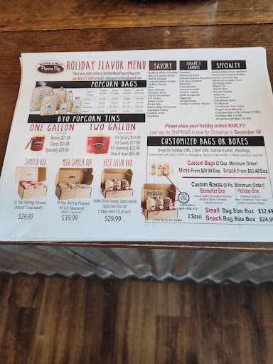 Read moreCame here over the weekend and finally got to dig in to the sample box we ordered. You only get 12 8oz containers of different flavors in said box which is relatively disappointing for the price of $35. The selections are done by staff and your left choosing only the seasonal flavor which means youâre stuck praying whoever selected the box flavors for the month gives you something worth eating. Honestly the flavors for some, like the buttery white cheddar leaves the butter to be overpowering and the dill pickle was just underwhelming. Honestly this company is way too overpriced just to sell popcorn in four different locations. On top of that the girl behind the counter didnât change her gloves when handling orders and collecting cash and debit cards before going back to dealing with the popcorn. I get it, itâs a small town and Saturdayâs at noon youâre going to get an overwhelming influx of people. But itâs a sanitary and a health code hazard. Always change your gloves, I had to walk out of the store with a family member because we both noticed this and let my group members finish their transactions...