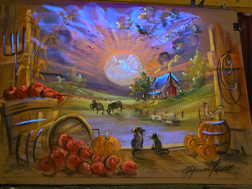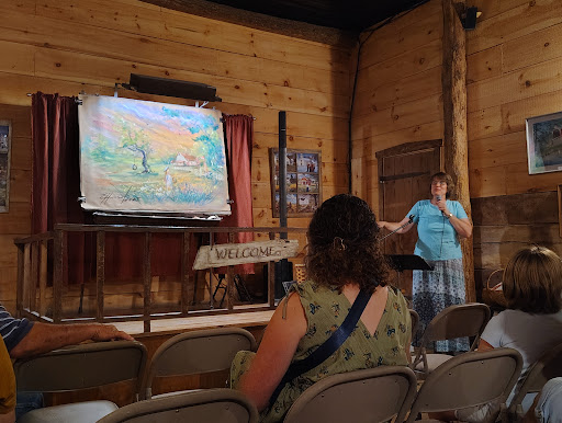 I visited Barnyard Art Studio on a bus trip to Lancaster. It was our second stop and I really enjoyed hearing local artist Elva Hurst openly share about growing up in a conservative mennonite family. I learned about the art of Chalk Talk and got to experience her do a beautiful live drawing for us. It was narrated by her as she shared. For example, the timing was smooth, like when she talked about birds while she drew them in the sky was really powerful. She was fun, motivational and inspiring. It was very relaxing and at the end she used black and colored lighting effects which made things come to life. There is a cute gift shop with a lot of original artwork and antiques and fun things. There was a very clean restroom as well. It was a...