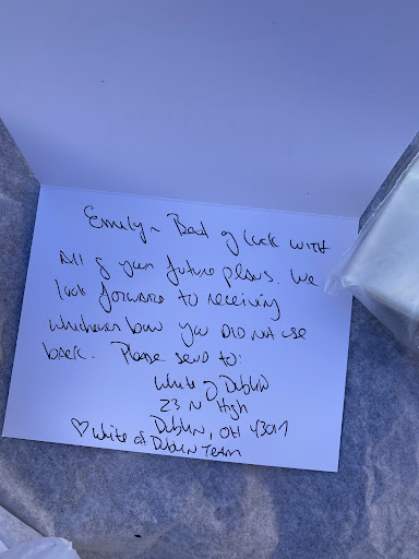 I live in Denver, CO and my family lives in Cleveland, OH so I had already booked flights to Cleveland to then drive the 2+ hours to Dublin, OH for my fitting two weeks later. My wedding date was also less than a month away (October 7th). Shipping takes time so this was a huge concern, but I was assured I would have a bow.