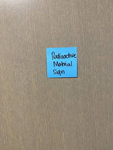 [ ] Radiation warning sign missing with clear info on a blue post it note indicating that the hospital was aware. Perhaps the NRC should be contacted.