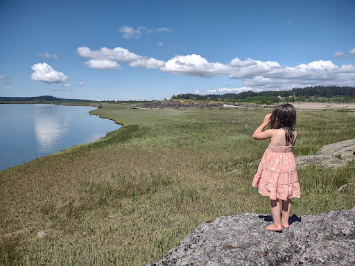 Read moreCraft Island is a bedrock knob that provides a spectacular bird's eye view of deltaic sedimentary processes and tidal wetland hydraulics/hydrology on the Skagit River. Plus there are native plants, flowers, schooling fish fry, eagles, and many other birds. Thank you conservation community for preserving this special classroom /habitat for wildlife. It is part of the Skagit Wildlife Area managed by the WDFW. The trail, island, and delta trip was one of the best experiential learning opportunities I have had to date with my daughter. I recommend, to time your visit. Head out on an ebbing tide to watch and explore the delta sand bars, eddy's, driftwood, and the habitat they create. The mile-long walk from Rawlings Rd crosses an estuarine wetland with feeder channels, frogs, water striders, and birds galore. Rubber boots or a willingness to get your feet muddy and wet is likely, except in late summer. In May the flowers and shrubs begin to bloom on the rocky island. At high tide, you will be confined to the island and the two trails that wind up 80ft to the bald 360-degree view at the top. The matrix-supported conglomerate bedrock is even interesting to look at and climb around on. At low tide, you can walk miles on the sandy bars. On sunny and still days the shallow off-channel pools on the delta can warm up enough to dawn swim trunks and make you want to build drip castles.