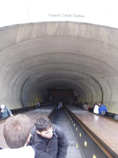 On a personal note, I really do like the "future as seen through the early mid-20th century's" feel of this station. For those architecturally inclined, note that there are a total of 11 different styles of station architecture. DuPont Station has one of the most common styles throughout the WMATA. The "Brutalist" style, as it is known, was pervasive from the 50's to the '70s and prominent architect Harry Weese was who is responsible for DuPont Station and a bunch of other DC metro stop designs. I learned that this particular Brutalist design is sometimes referred to as the "Waffle", that most of the downtown stops are in the "Waffle" design" but that DuPont Station was uniquely built with precast panels whereas all the others were constructed using the "pour-in-place" method (for cost-savings, I suspect).