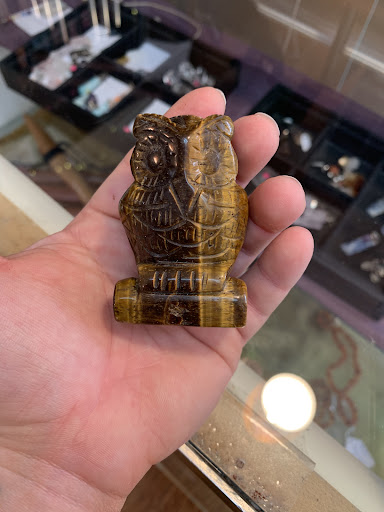 I was nervous going in as I’m newly interested in crystals/gems & was anxious about judgement from more well versed individuals. It’s also a quiet store, not many shoppers at one time, so I was concerned I’d have to interact with the “staff” the entire time, but I was completely given my space yet they were always available and eager to help with my questions. I’m not really a “vibes” person, but this place just FELT GOOD. It’s been a struggle to NOT go back every chance I get and just browse their stock. Highly recommended this shop. 10/10 will be shopping there more than my wallet would like! I purchased quite a few little things, but here one: little tigers eye owl for my mother-in-law for her owl...