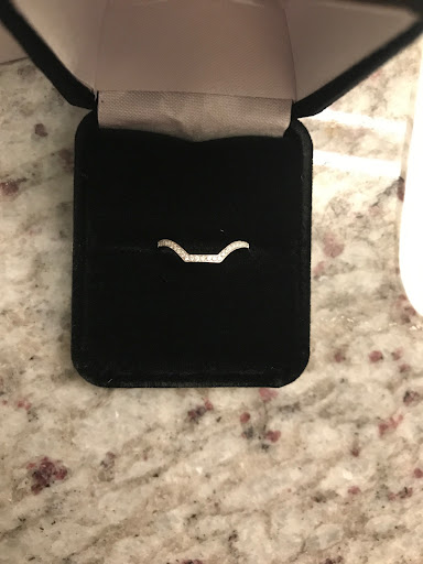 Then in June 2019 I asked him to make a custom band to match the engagement ring. We talked about what I wanted- tiny diamonds to resemble the diamonds already on the engagement ring. He did an incredible job! My engagement ring is not quite symmetric and he made it to match the side he felt looked best. It fits EXACTLY with no space between the two rings. It's just what I wanted. Now of course I had to let them have my engagement ring so they could make a wax mold from it but all this was documented and I have insurance on the ring just in case. If I didn't need such an exact match that would not have been necessary.