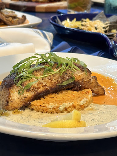 We met some friends for dinner. I’ve been here once before and absolutely love the food. For those past reviews they no longer have the store items. I absolutely love the decor and the ambience. There is a rooftop seating area with tables and an area that is more a living room with couches and chairs for those who just wanna sit around and have a few drinks. They have a wide selection of wines and drinks. I had one of their specialty drinks, which was great. Kayla is a great bartender and can make great suggestions if you’re unsure on choice of liquor choices. My husband had the pork chop and said it was delicious, the presentation was also very unique. I shrimp scampi it was very tasty and plated very well. They have live music, I would say kind of a James Taylor type genre. He was very nice and did...