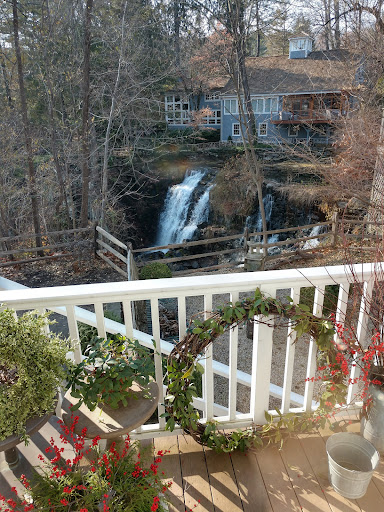 "Perched above New Preston Falls, Pergola represents a transition from the wilds of nature to the cultivated environment of home. The sound of the waterfall, together with the rustic cedar entrance pergola and the antique barn-roof slate floor, instantly establishes a natural store setting. The artfully displayed combination of uncommon plant material, aged terra cotta planters, weathered antiques, botanical books & prints, distinctive home fragrance collections, and a variety of natural curiosities, offers a highly sensual shopping experience for home & garden."