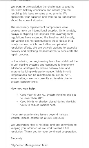 The quality of management has declined sharply over time. To help you sort through what you'll be seeing in other reviews: Until 2022, the property was managed by Bozzuto, which longtime residents universally say was excellent. I was slightly apprehensive reading the concerns about the management change to Willowick (later Hines) when I moved in, but my experience was initially positive. The concierge team was friendly, handled packages well, was responsive to maintenance issues, and everything else you'd hope for a luxury property. Then, in 2024, they fired the concierge team and attempted to remove one of the front desks, infuriating residents. The angry reviews from this period were part of a pressure campaign. Although the front desk was ultimately saved, the new contracted-out team is far less attentive. They have not made an effort to learn residents' names, there are often periods later at night when the desk is unstaffed, and management is not always responsive to maintenance issues. Services like away-from-home plant watering that used to be provided without issue now receive a confirmation email and then get forgotten. As a silver lining, we came out of the episode with something of a tenants' union, which is (but should not be) rare for luxury properties. One other note: The leasing team has not always been communicative, sometimes responding to emails only after a follow-up.