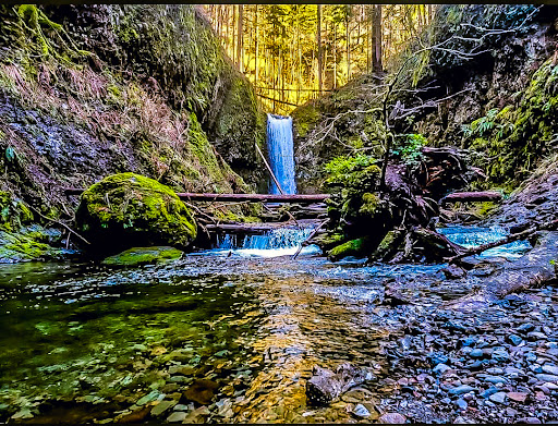 Make it to the top of the trail at Multnomah Falls, hang a left at the junction instead of going to the falls lookout, and keep going. Great picturesque falls, often confused with Ecola Falls which is just a bit farther...