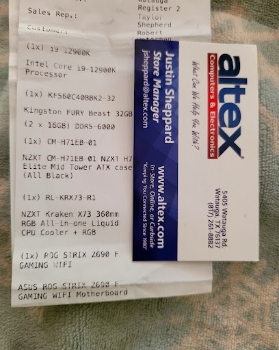 Read moreBeen coming to ALTEX here for since before they moved here, and I have never regretted it! Sure the health check can be a bit pricy at $80, but they do a damn good job of helping me maintain my PC. If I spend money here, they crank it out like professionals! I’m not the most tech minded person, so coming here on a free day and asking them to work their magic really helps assuage my concerns, or even confirm my worst fears when I have to bring my little war machine in. I’ve come here for things as little as a can of air spray and Ethernet cables, and as big as buying my RTX4060, and upgrading my OS! Every time I’ve brought my little war machine in, they help keep her parts replaced and maintained, and give her back to me in working order, and back to 100% gaming condition! Sure Microcenter has a wider selection, but ALTEX brings the Professionals. I go to Microcenter for outer hardware(monitors and mice and keyboards), but when it comes to the vitals of my war machine, ALTEX...
