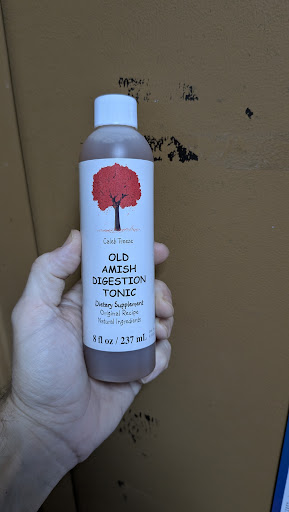Then I spotted a Old Amish Digestion Tonic bottle with 40 shots of tonic, for $12.99, containing a mix of Apple cider vinegar, ginger juice and garlic. I usually avoid garlic, as it can be an issue sometimes. But I am optimistic about this tonic. Hopefully it will help unblocked trapped wind and get the pipes off my colon flowing with less pains. I will try it and update this review, afterward, to let yah know.