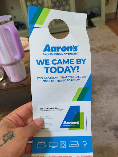 Read moreWhen u walk in aaron the lady that helped us she was very nice she helped my husband for a long time . This is my first time getting furniture from Aarons husband bought little this there well today the furniture was supposed to come between 12- 6 pm ok husband called the first time they told him that it was in the truck already ok well it 6.36 pm . Nothing yet ok so the lady karina called me back and told me in 25 minutes they will be here oh and she said about the snow it not that bad .. home choice gives u a time and there on the schedule that very good .. also I was put on hold for a long time what the he'll I called back and a girl answer I told her I was put on hold and I forgot the girl name so the girl I was talking to got on and she said I'm soooo sorry I had 2 customer came in the store hello u should have let me know that was rude if u want to work u shouldn't have done that usually there not a lot of people goes there when ur about to close I see u people justed talking I don't think I like this by the way I see this this store is in waukegan on...