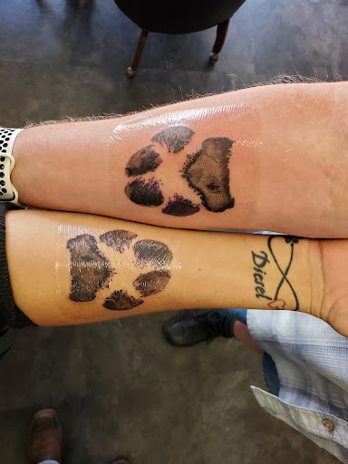 I wanted to get a tattoo of my Chocolate Lab's paw for sometime. My wife thought it sounded like something she would like as well. Although she wasn't so sure about me since it would be my first tattoo. My Wife found Tyler through a friend and started talking. She explained what we were looking for and sent pictures.