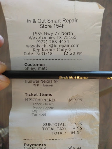 As you can see from the photo I visited CPR on 3/31/2018 and paid them $64.94 to replace the battery in my Nexus 6P. I had ordered a replacement battery and tool kit from Amazon with plans to do it myself but my schedule was too busy and I was a little hesitant to do the work.