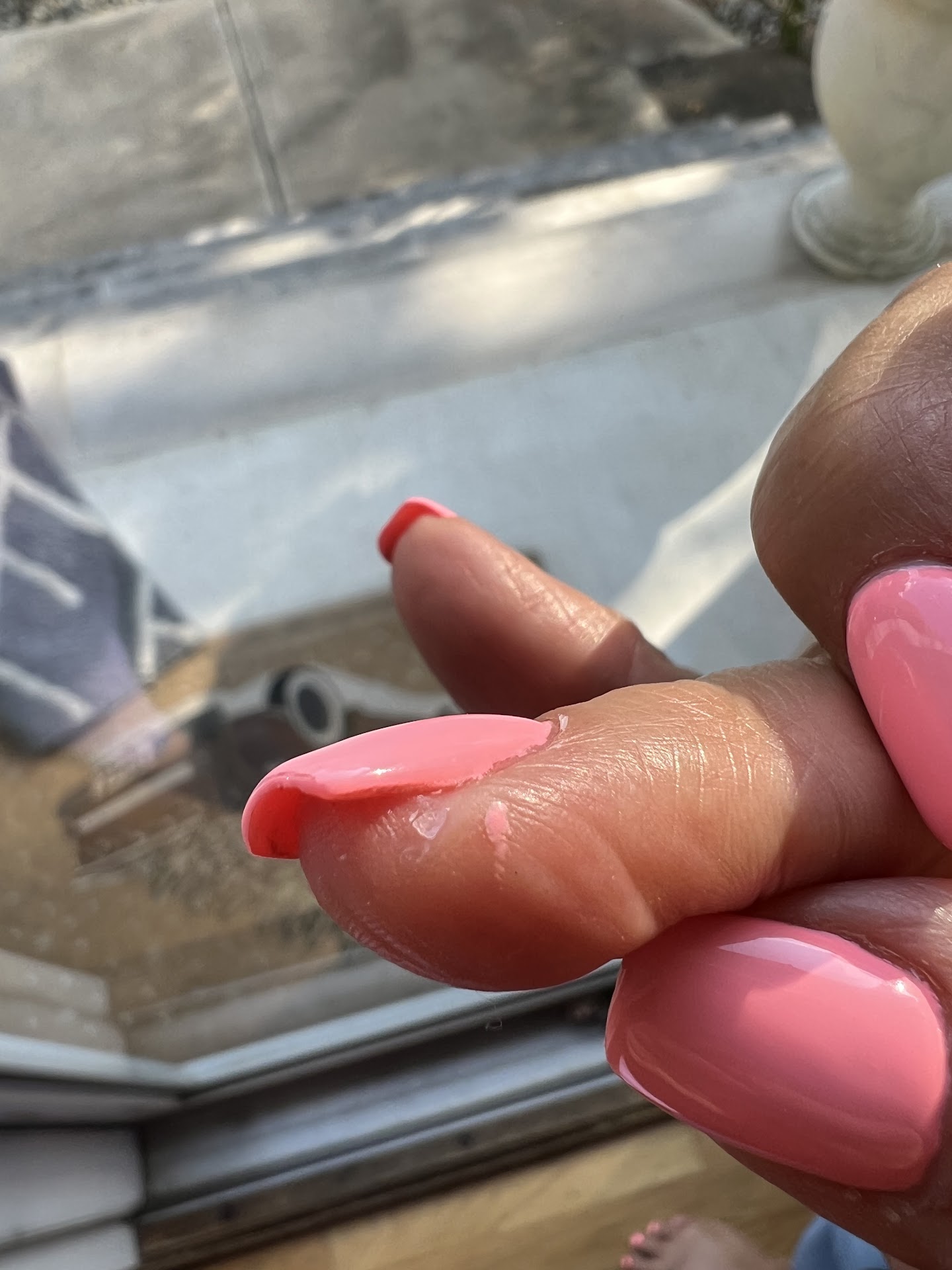Read moreWent here for the second time and am very disappointed. 3 weeks ago I got acrylic nails done. When I came home they hurt my nails and I wasn’t happy. After 3 weeks I decided to have them removed because I didn’t like them and they still hurt/were uncomfortable. When I was there and said I wanted them removed, 2 different people questioned why I wanted them off and like me not liking them wasn’t a valid enough reason. When I went to get them removed, the employee used another nail to pull them off - he would wedge the corner under my nails to lift it and pull, there was no soaking, nothing. It absolutely destroyed my nails (see picture). After 4 nails the technician stopped this method and grinded/filed them off instead. I was asked if I got my acrylics done at this salon and the technician seemed shocked to hear that I got it done there. He even asked me who did them and when I said “the lady next to you” he shook his head. My nails were so brittle and fragile from this. I was then told not to get acrylics again because I didn’t have the right type of nails for it. I showed him my inspo pic for my nails and explained the color changes I wanted and he said he could do it. The inspo pic is provided (blue nails) and the pink is what I received. When I was finished he even said something a long the lines that he didn’t work with such short nails and I could tell he knew they looked bad. I was never asked what nail shape I wanted and some are square and some are round. By the time I got home (20 min) my nail color started turning purple (see picture of thumb). It’s been a few hours since I left and one nail already chipped. I am so disappointed. The employee was very nice I appreciated how he handled this situation - he did try his best… but honestly this is just terrible. I wasn’t going to leave a bad review because of how the employee did try to rectify the situation but… this is just too much. I feel like I can’t even take it off because my nails will just fall apart with it and be worse. On a positive note - I got a pedicure with Denise (I think that was her name) and that came out well and...