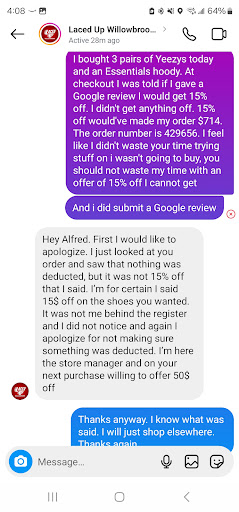 Read moreLace up in Willowbrook is the spot to go!!!! Listen when I tell you that the help from my guy Christian was real. I couldn’t believe it. I was searching for V-Lone shirt that I miss when it came out. He was able to find and track it down for me. He even helped with a pair of dunks that I was missing from my collection. This store is the place to go when you missing that item you couldn’t get when it first came out. Christan will help the best way he can and a down to earth person that I had a conversation with. Thank...